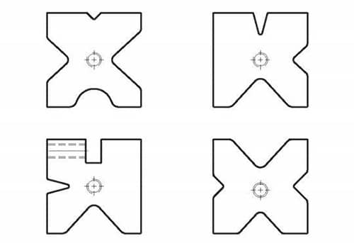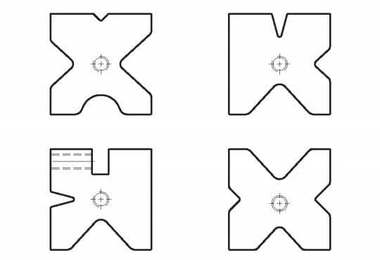 3 way and 4 way dies are generally used for straight bending operations, and function as die holders or radius forming tools.